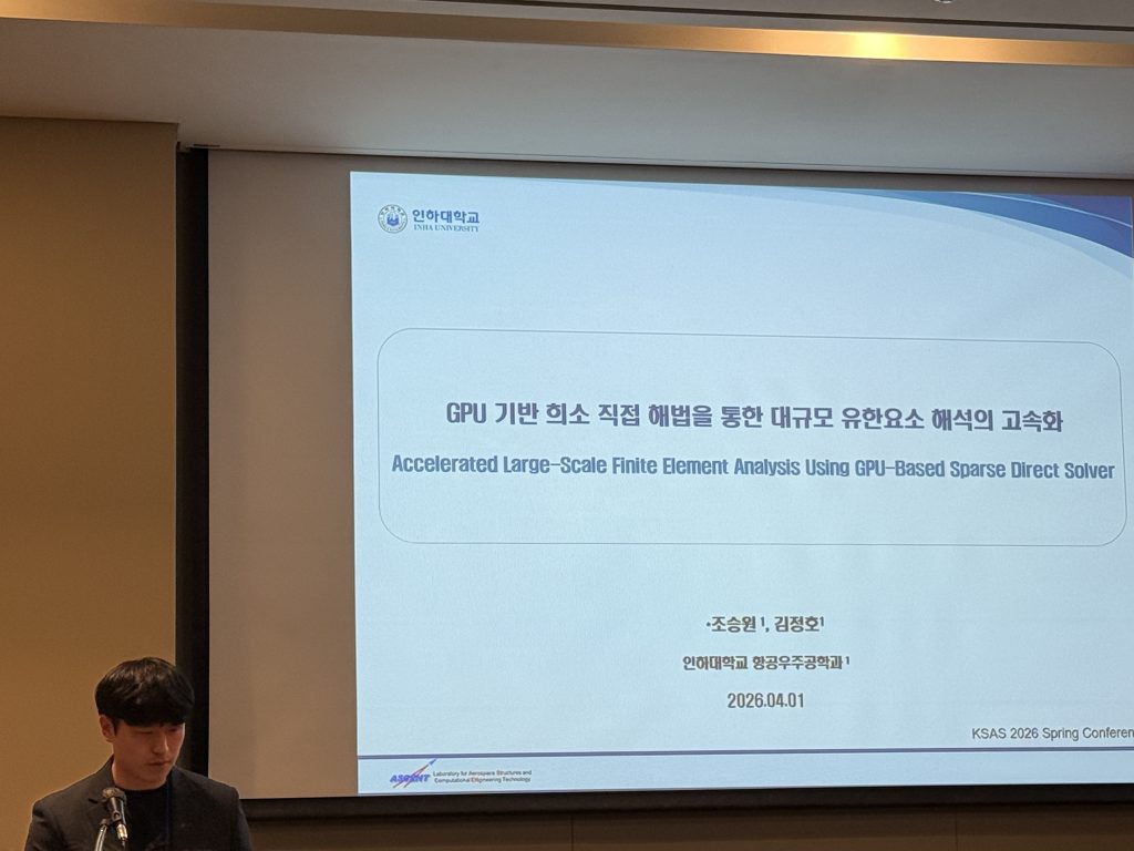 2026 항공우주학회 춘계학술대회 댓글 달기 / 글쓴이 admin4homepage / 2026년 04월 06일 구조연구실 연구원들은 제주도에서 개최된 2026 항공우주학회 춘계학술대회에 참여했습니다. 그동안 열심히 연구한 내용을 발표하고 잠깐의 여유를 가졌습니다.